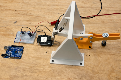 I designed a magnetically actuated door-locking mechanism that uses electromagnetic holding force to secure an enclosure during normal operation. Locking and release behavior were controlled through microcontroller-based power switching, enabling conditional unlocking based on system logic.